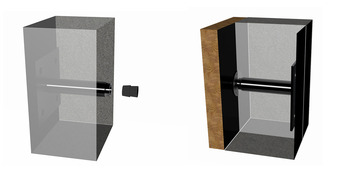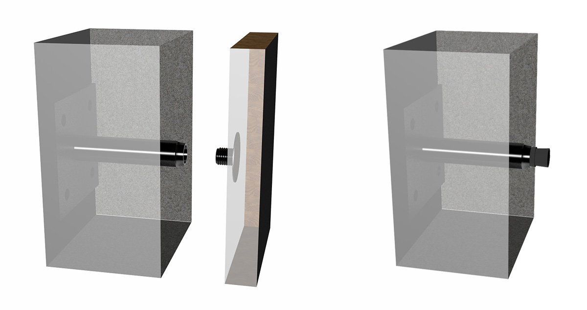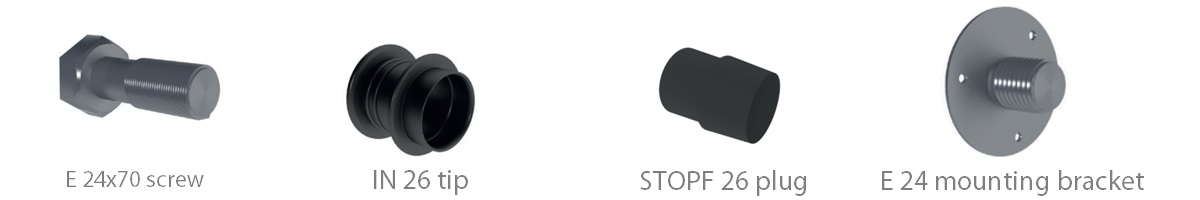 The E24 anchoring element should be attached to the formwork with the use of the mounting bracket. After concreting, the anchor enables the assembly of scaffolding and platforms. After the works are finished, the screw hole should be closed with the STOPF 26 plug.