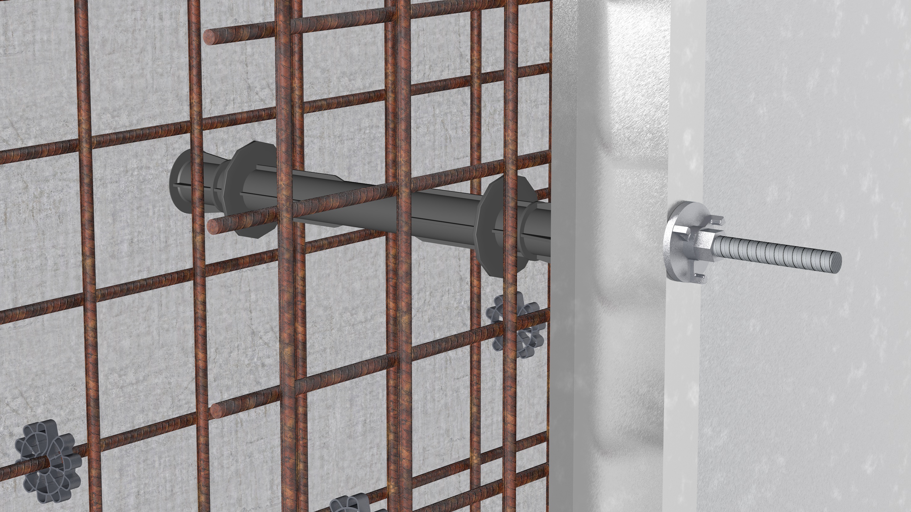 1. After installing the first wall of the formwork and mounting a tie, formwork distance LockEr should be applied to the tie.