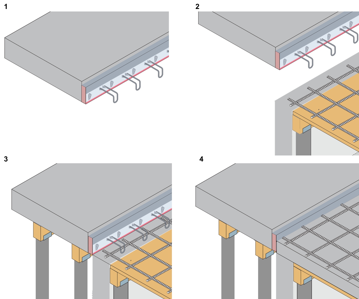 Thermotec of the B and C types is a safe and easy to install method of connecting the ceiling with the supported balcony slab. These connectors only transfer shear forces acting in one direction, not transfer bending moments.