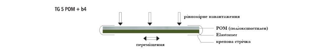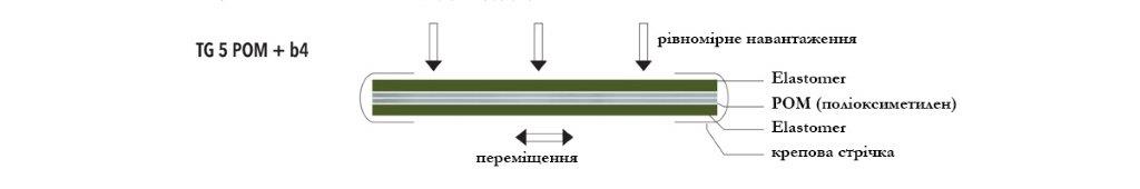 Плівки типу TG5POM, ламіновані еластомером, призначені для відокремлення елементів, що піддаються високим навантаженням до 10 Н/мм2, наприклад, у фундаменті, а також для обмеження напруг, які виникають через зміни температури, усадки та повзучості компонентів або осідання структури.