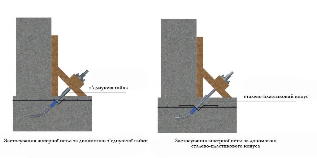 Перед початком бетонування нижньої плити необхідно встановити петлевий анкер.