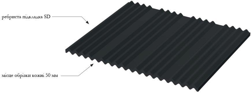 Доставка: в рулоні довжиною 10 м, шириною 200 мм або нарізана за бажанням. Профіль насічений. Це дозволяє нарізати смуги шириною 50 мм або 100 мм.