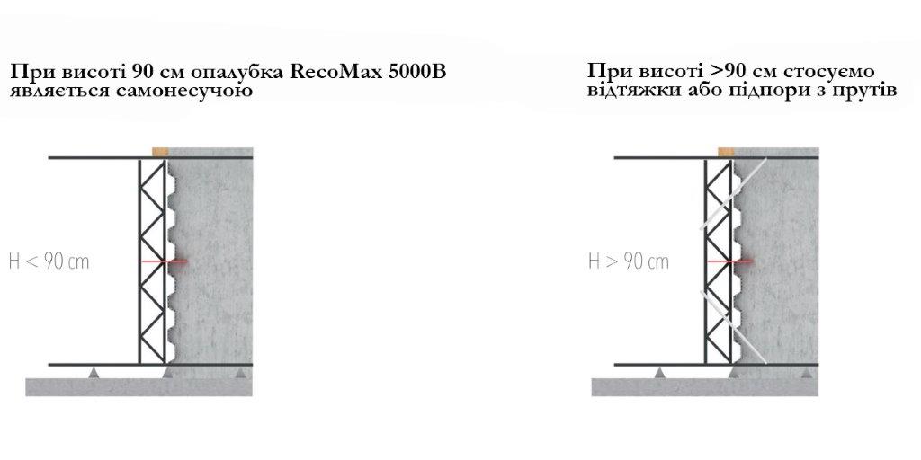 - До висоти H = 90 см опалубка RECOMAX 5000B є самонесучою.